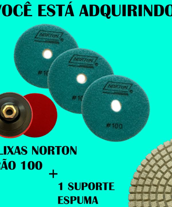 Kit Acabamento 3 Lixas Brilho D’água Norton Grão 100 + Suporte
