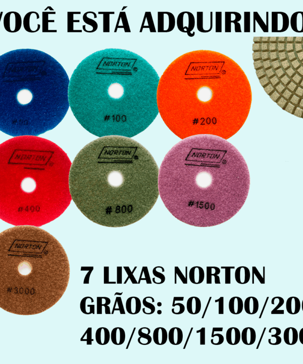 Kit 7 Lixas Brilho D’água Úmida Norton Diamantada Grãos 50 a 3000