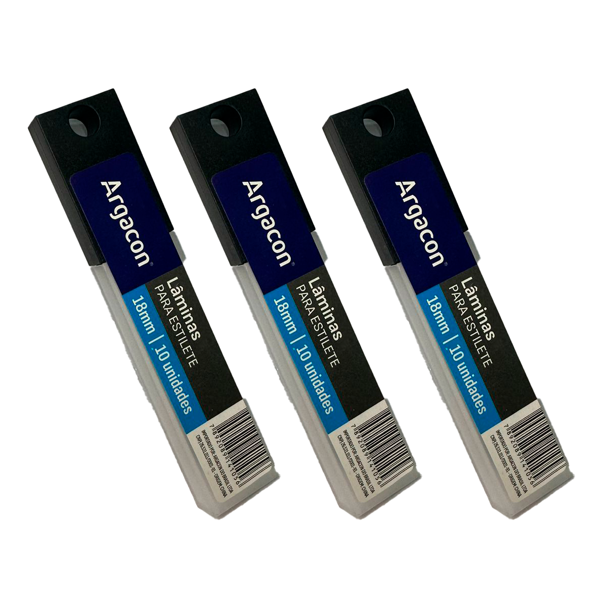 • 3 Caixas com 10 Lâminas Argacon 18mm (total: 30 lâminas)