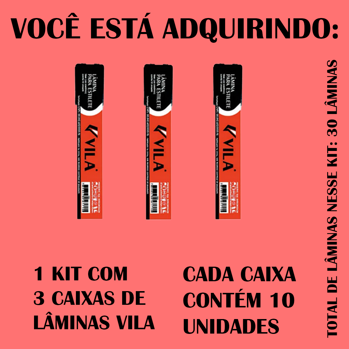 3 Caixas com 10 Lâminas Vila 18mm (total: 30 lâminas)