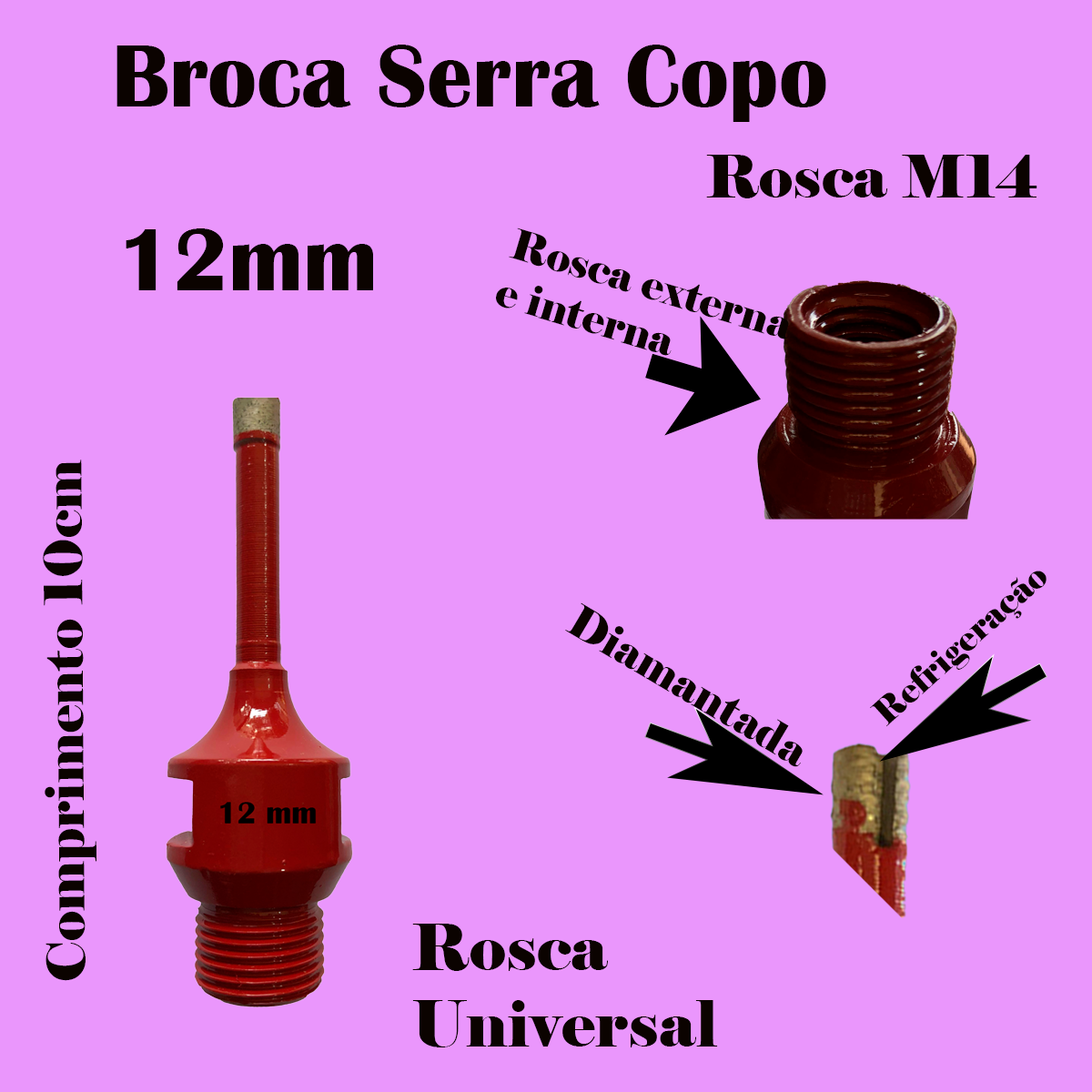 Broca Diamantada 12mm P/marmores Granitos Porcelanatos Pisos