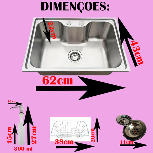 Cuba Cozinha Gourmet Aço Inox 62×43 Br Cubas C/ Acessórios