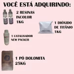 Kit 2 Resinas Cristal,Pó Dolomita,Dióxido Titânio e Catalisador