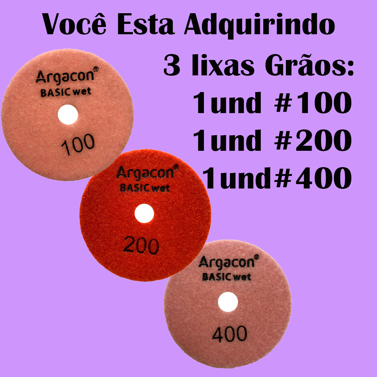 Kit 3 Lixas Auto Brilho D’agua Argacon Grãos 100/200/400