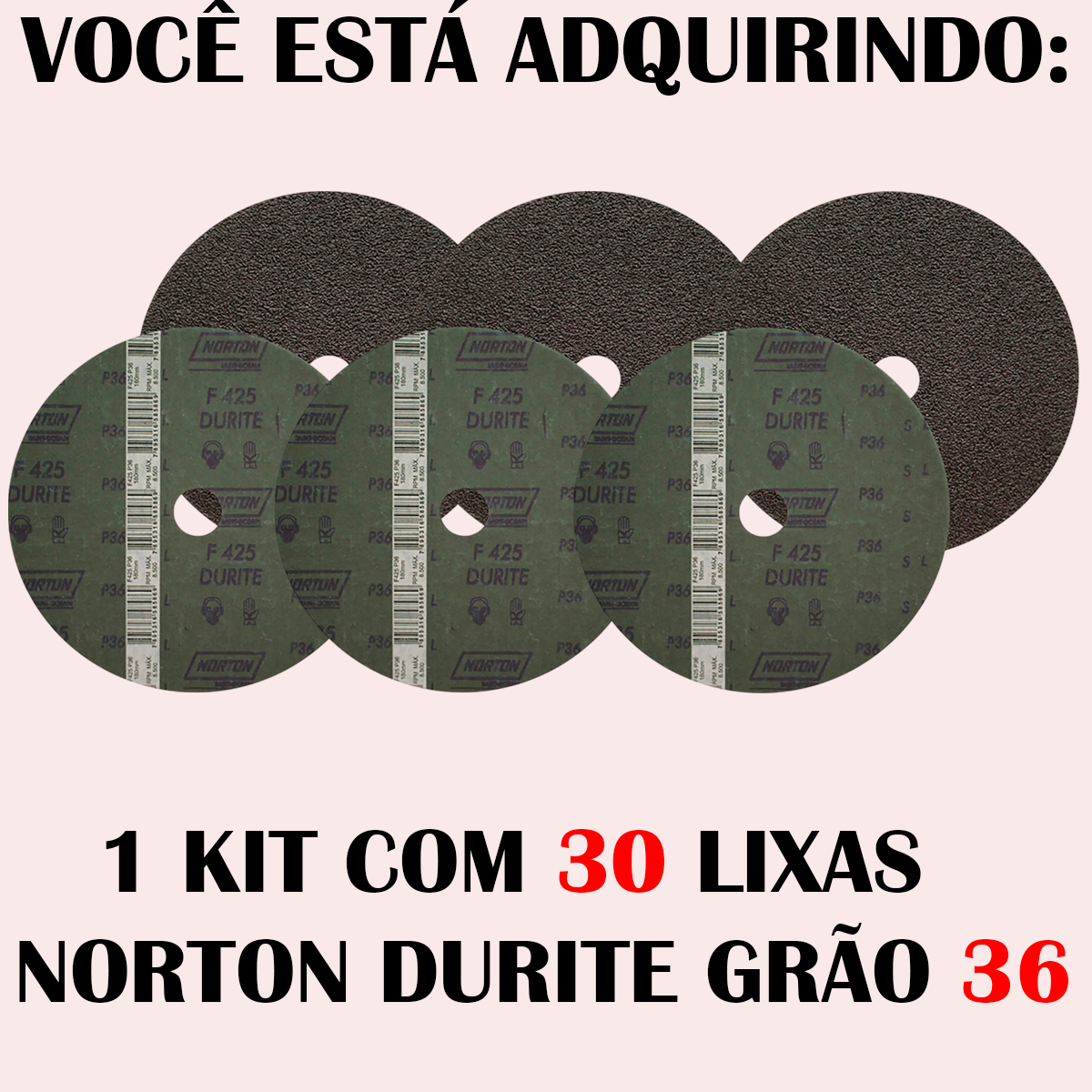 Kit 30 Lixas Norton Durit F425 Grão #36 180mm Mármore Grani