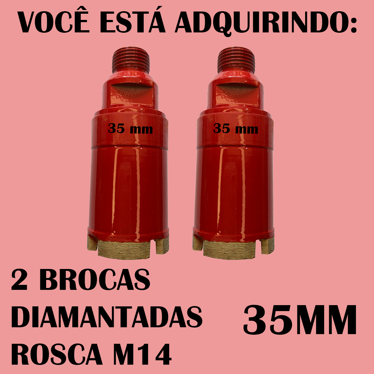 Kit com 2 brocas diamantadas de 35mm para porcelanato, granito, mármore e cerâmica. Alta precisão e durabilidade garantida.