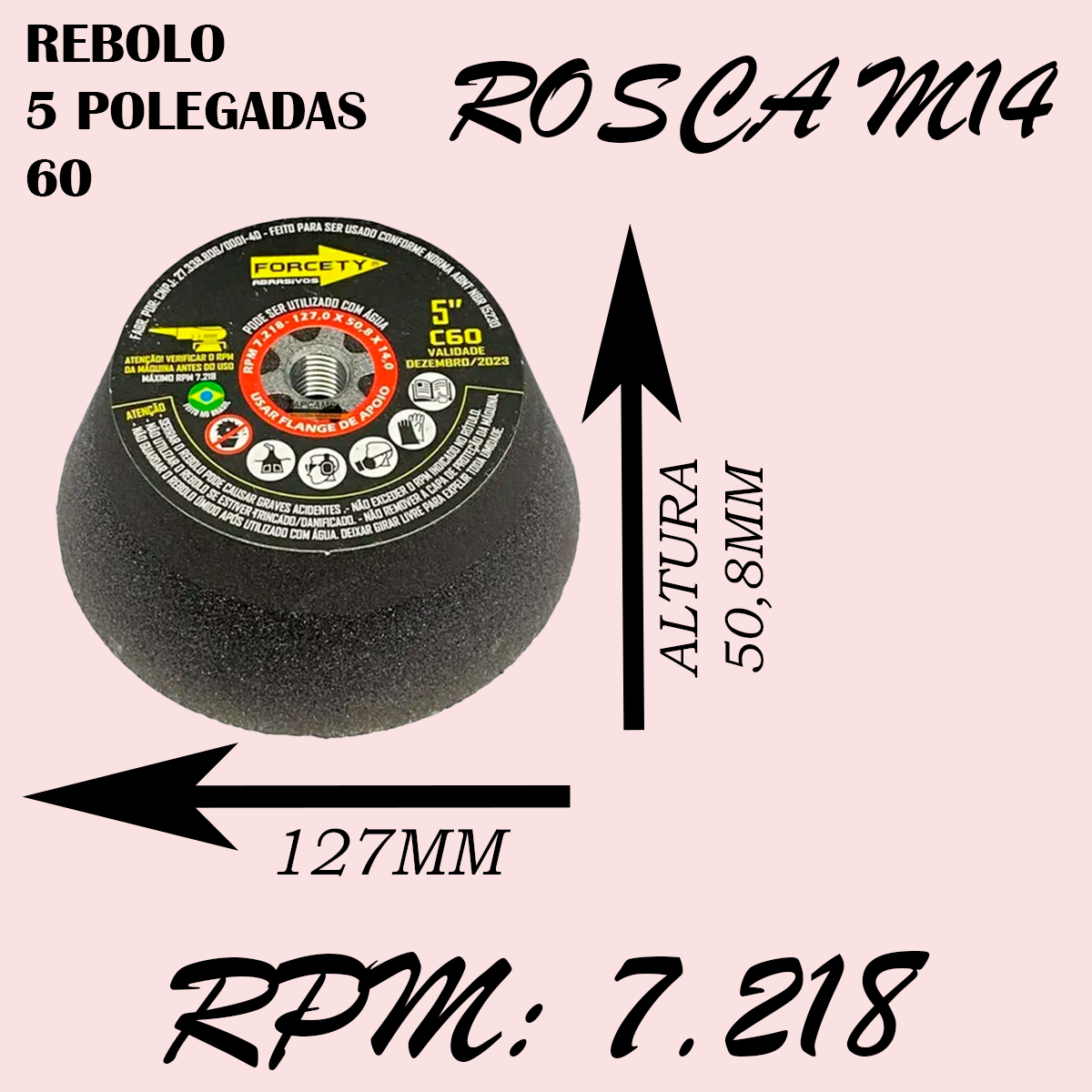 Rebolo Forcety Conico 5P Grão 60 é a solução perfeita para profissionais exigentes que buscam eficiência,precisão e acabamento superior. Com diâmetro de 127mm , este rebolo foi desenvolvido para desbaste rápido e eficaz em materiais como porcelanato, granitos, mármores e outros tipos de pedras