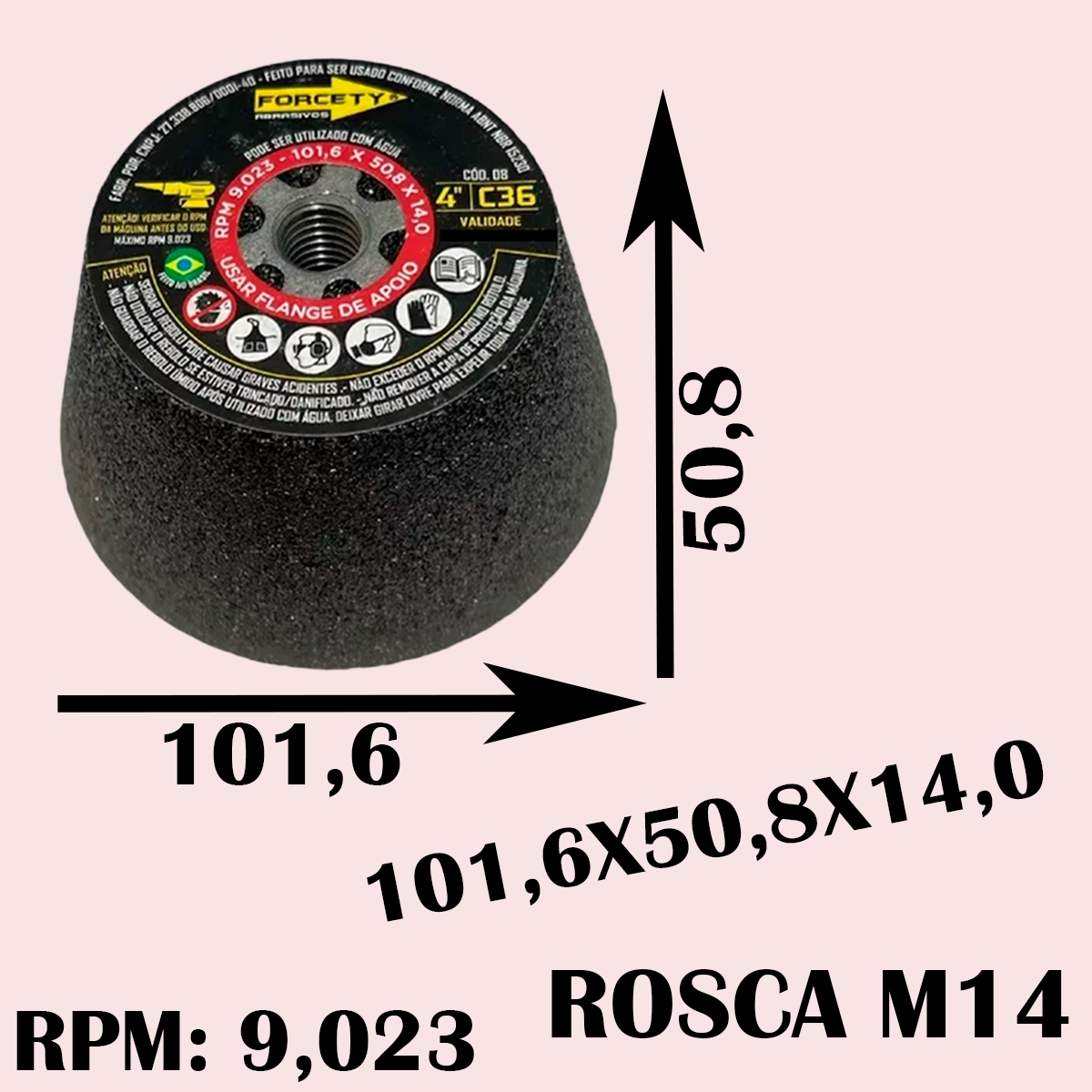 O Rebolo Copo Cônico 4 Polegadas Grão 36 da Forcety é a solução perfeita para profissionais exigentes que buscam eficiência,precisão e acabamento superior. Com diâmetro de 101,6 mm , este rebolo foi desenvolvido para desbaste rápido e eficaz em materiais como porcelanato, granitos, mármores e outros tipos de pedras.