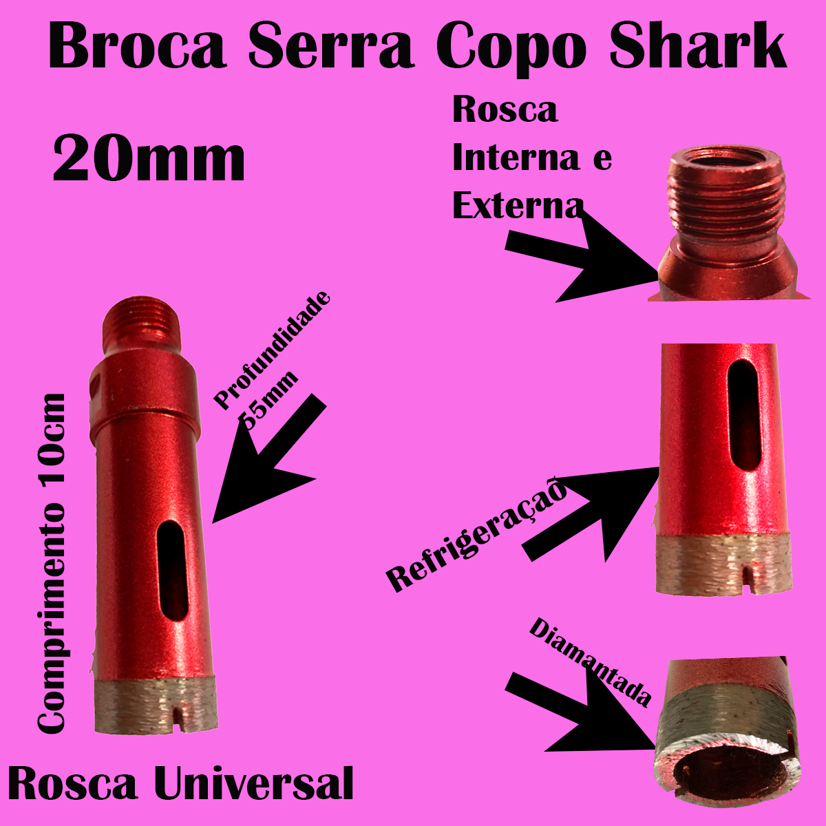 Serra Copo Broca Diamantada Shark 20mm Mármore Porcelanato G