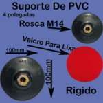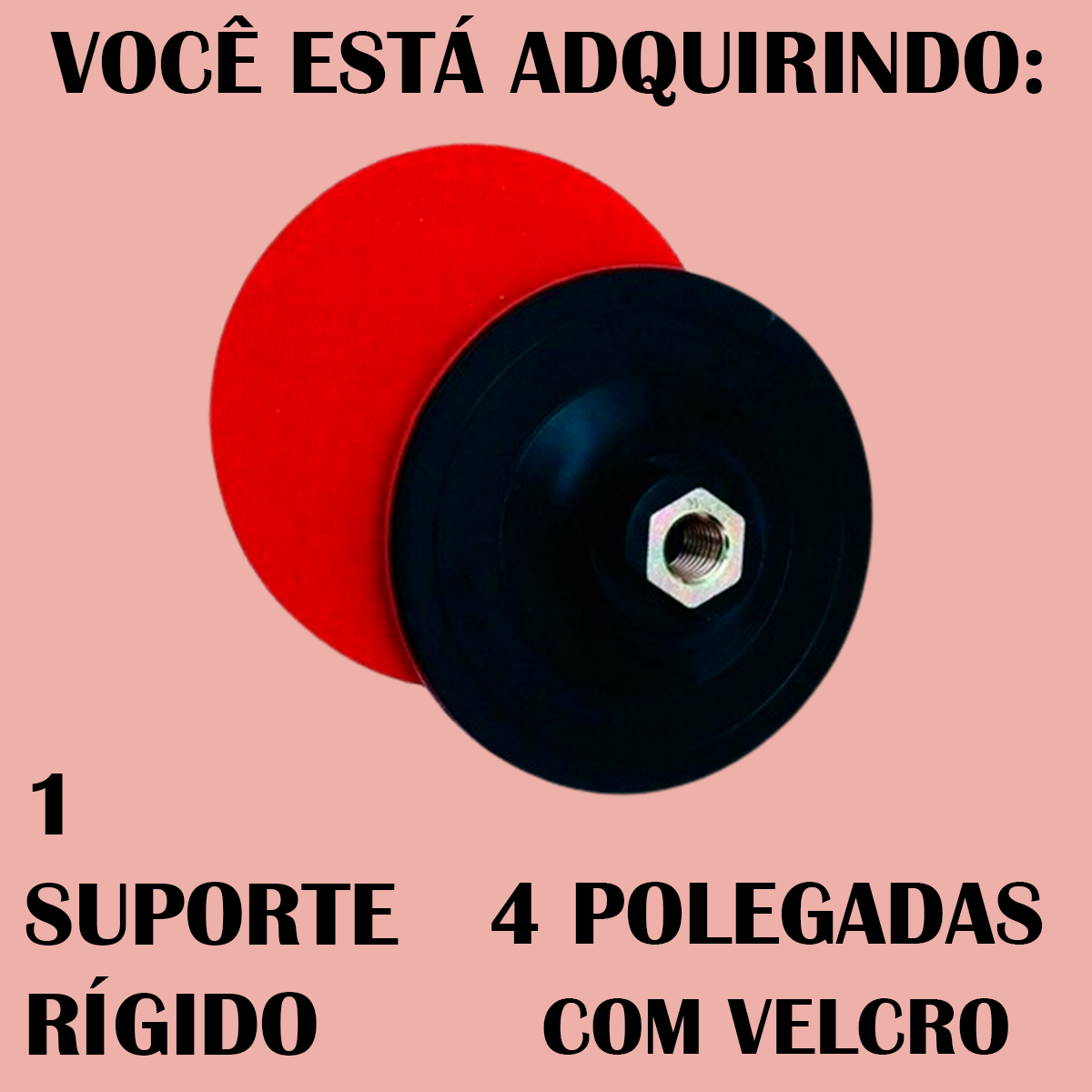 Suporte rígido de PVC 4 polegadas com velcro, ideal para lixadeiras e politrizes. Garante fixação firme, alta durabilidade e excelente desempenho em trabalhos de lixamento e polimento em superfícies planas.